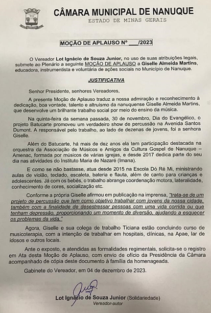 11/12 da Câmara pelo vereador José Osvaldo Lima dos Santos a Indicação nº